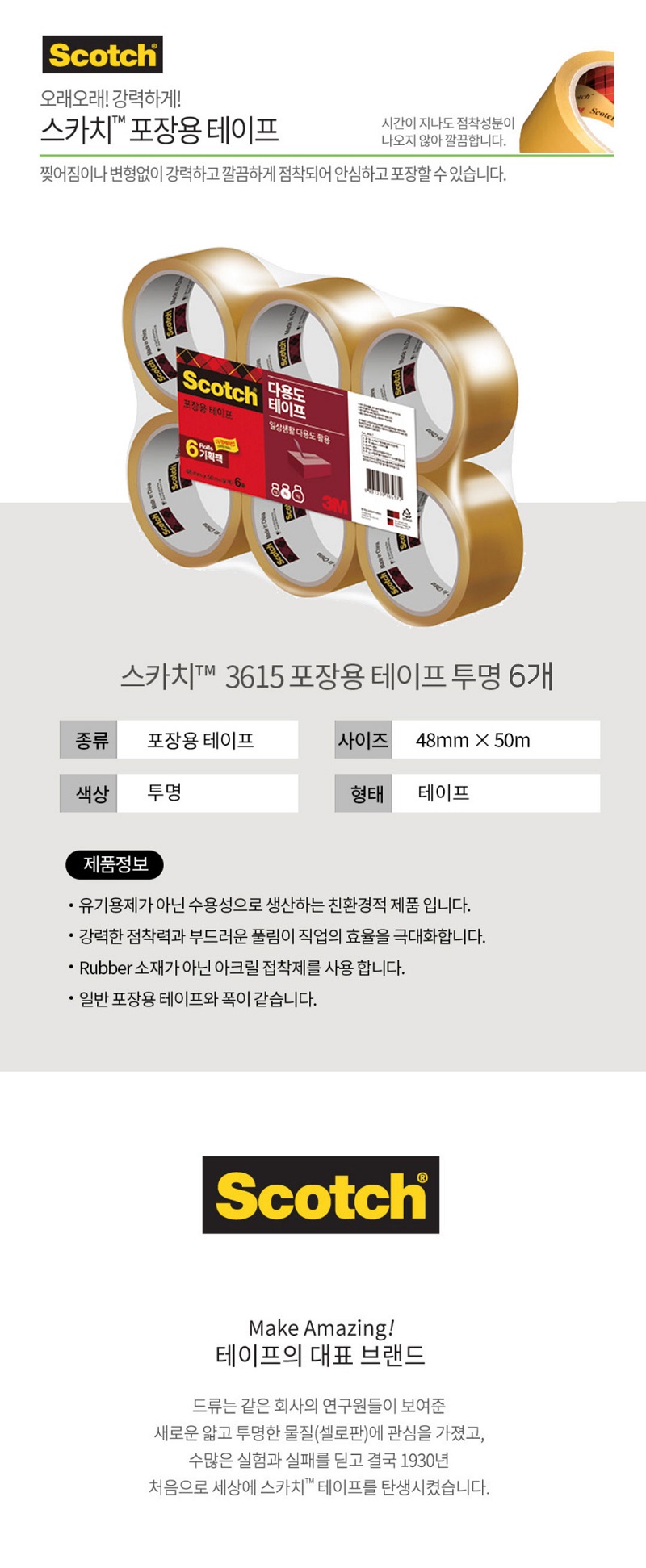 [3M] ½ºÄ«Ä¡ Æ÷Àå¿ë Åõ¸íÅ×ÀÌÇÁ [48mm x 50m x 6°³ÀÔ]