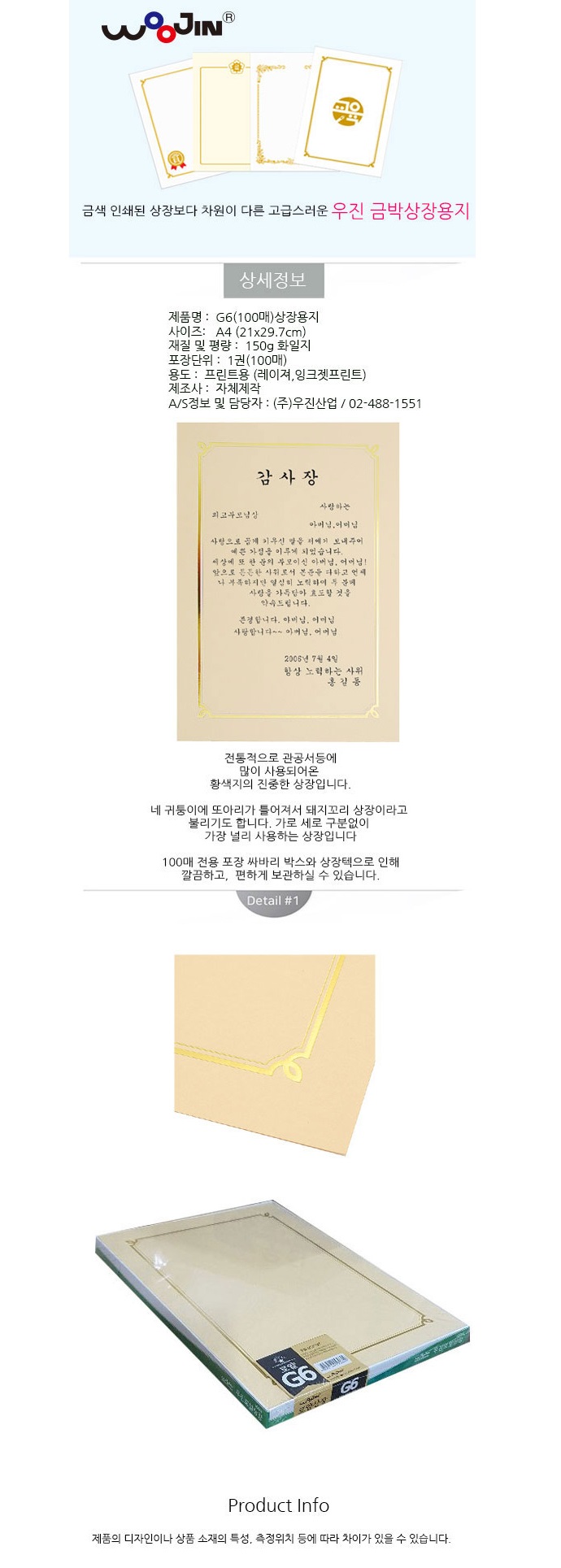 [¿ìÁø] ·Î¾â ±Ý»ö »óÀå¿ëÁö 100¸Å [A4-150g]